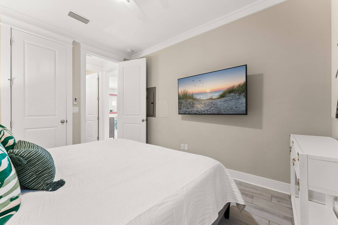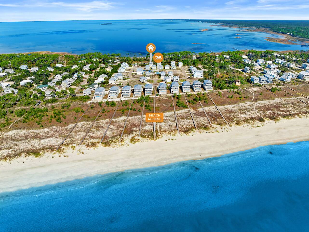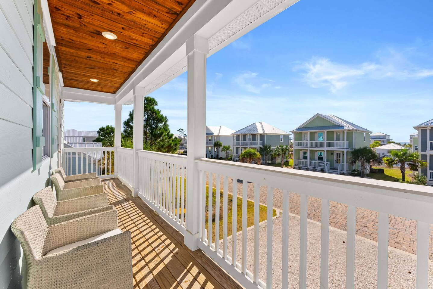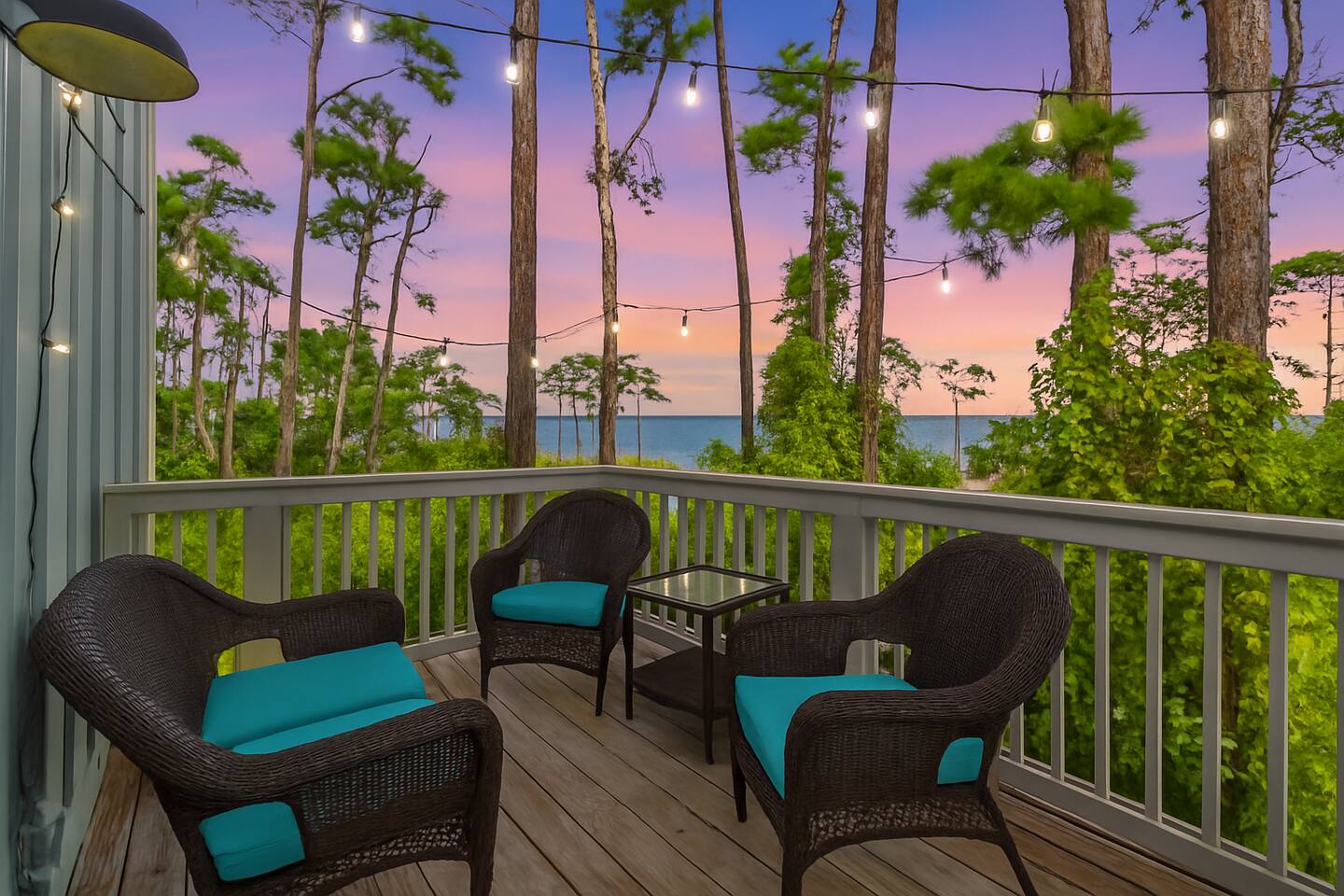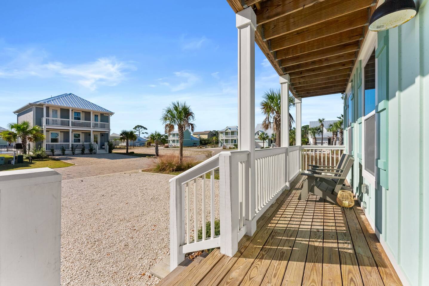 Welcome to Sunset Martini, a beautifully designed 5-bedroom, 3-bath coastal retreat just a very short walk from the white sands of Cape San Blas. Perfect for families and groups, this home blends modern coastal style, thoughtful amenities, and relaxed comfort in an easy, laid-back setting. Well-behaved dogs are welcome, so your whole crew can enjoy the getaway together. 🌿 Bright, Modern Coastal Interiors Step into light-filled, airy spaces designed for relaxation and gathering: -Spacious open living + dining area with plush furnishings -Fully equipped kitchen (quality cookware, Ninja blender, -Crockpot, toaster and so much more!) -Luxury toiletries provided -Smart TVs throughout -Designer wallpaper and curated décor in every bedroom -Lux quality sheets in all bedrooms -Books, board games & beach gear for effortless fun -Easy Self-Check In via Smart Lock -Perfect for families who want both comfort and style. ☕ Master Suite Retreat Your private master suite is made for slow mornings and quiet moments: -In-suite Keurig coffee bar -Private porch with peekaboo Gulf and sunrise views -Premium king bed & en-suite bathroom -A calming escape while the rest of the house wakes up. 🛏 Sleeping Arrangements (Sleeps 11) All bedrooms include premium mattresses and Roku Smart TVs: King Primary Suite — porch, coffee bar, en-suite bath King Bedroom 2- bay views King Bedroom 3- access to front porch with peekaboo gulf views King Bedroom 4- Bay Views Bunk Room — twin-over-full with trundle (great for kids) The downstairs level features the main living area with the kitchen, direct access to the back porch, and a king bedroom conveniently located across from a full bathroom with a walk-in shower. Perfect for multigenerational families or guests who prefer fewer stairs. The Upstairs area features 4 bedrooms (3 King, 1 Bunk) and two bathrooms as well as a full-size washer and dryer for your convenience. Enjoy access to the upstairs front porch from two King Bedrooms. Family-friendly extras include: 2 highchairs, pack & play, medium dog crate, and a rolling cooler — provided to make your stay simple and stress-free. ✨ Outdoor Living — Magical Day to Night Unwind outside with peaceful bay views and cozy touches: -Back patio overlooking St. Joseph Bay -Twinkle lights for evening ambiance -Premium propane grill -Comfortable lounge seating Ideal for grilling, gathering, and enjoying the Gulf breeze. 🏖 Community Amenities (Villa del Sol) Your stay includes exclusive access to: -Two pickleball courts (rackets included) -Beach volleyball court (volleyball provided) -Large resort-style pool -Beach Boardwalk Something for every age and energy level. 🌊 Short Walk to the Beach Just a super short walk brings you to the quiet, uncrowded shores of Cape San Blas — perfect for: Shelling Swimming Building sandcastles Sunset strolls Morning walks with your dog Bonfires This area is known for wildlife, calm waters, and family-friendly beaches. 📍 Nearby Attractions You’re close to the best of Cape San Blas & Port St. Joe: Salinas Park – 5 min (pickleball, playground, bayside trails) St. Joseph Peninsula State Park – 15 min Downtown Port St. Joe – 15–18 min (restaurants, boutiques, marina) Indian Pass Raw Bar – 10–12 min Apalachicola – 25–30 min Mexico Beach – 25–30 min