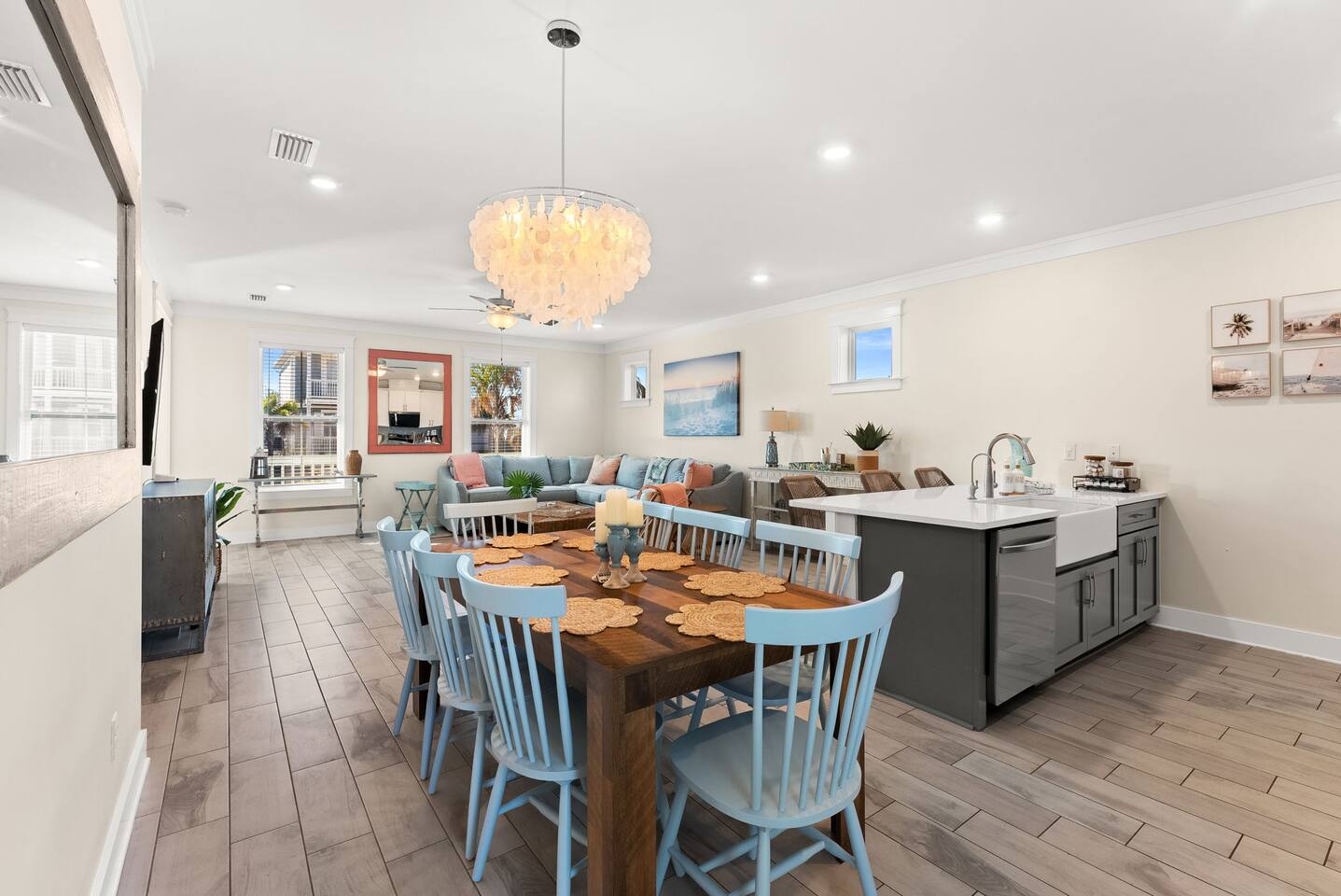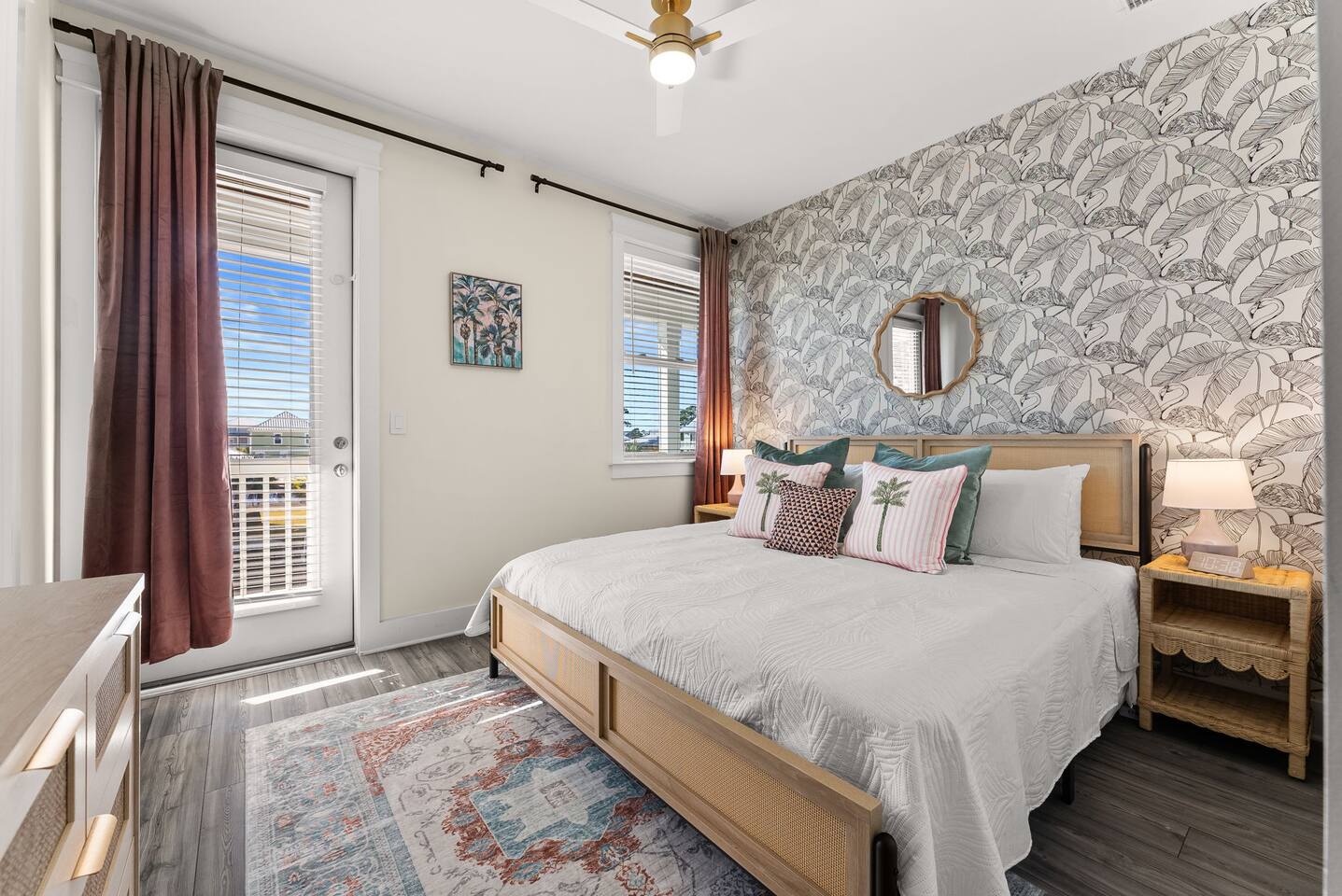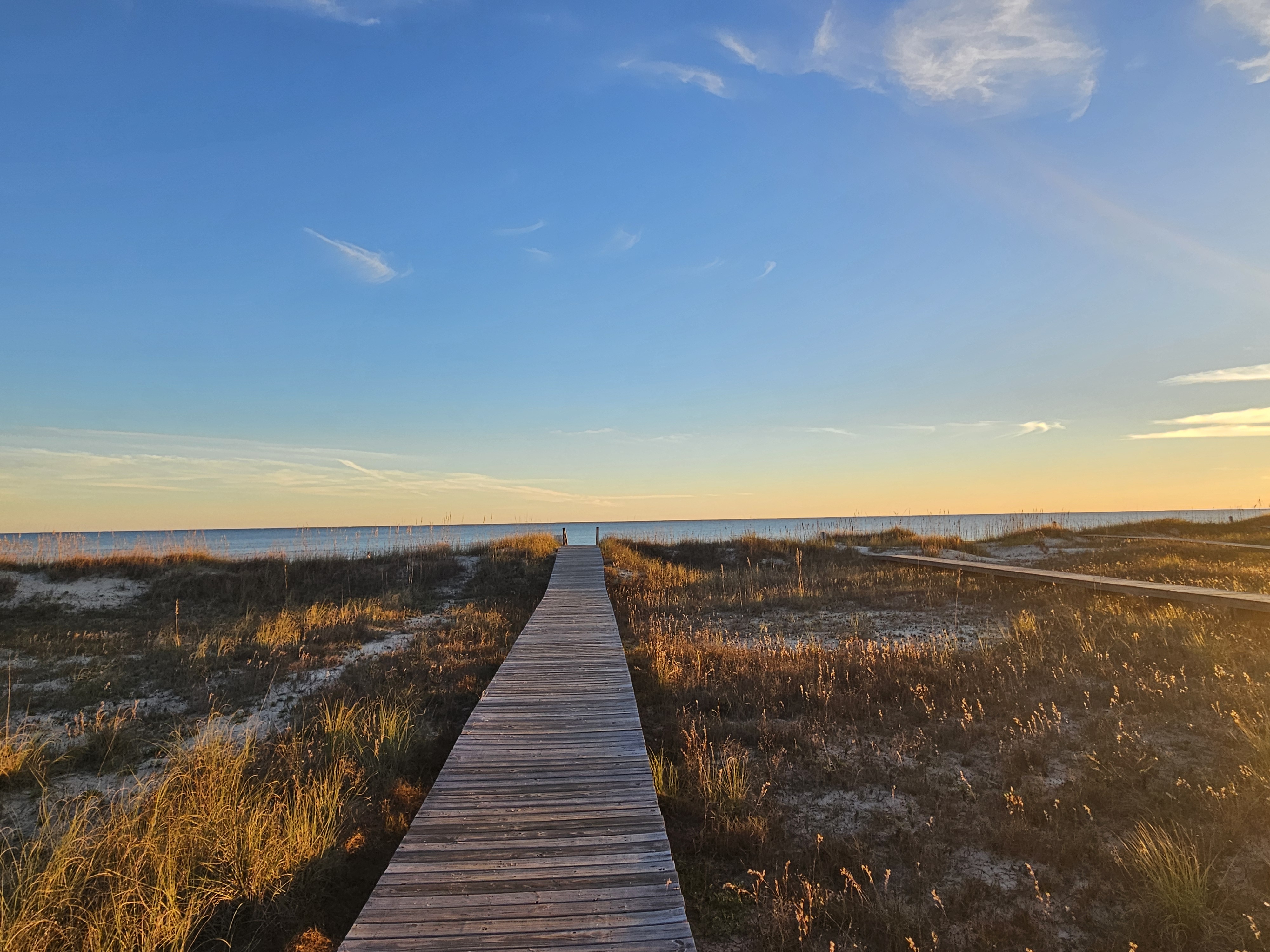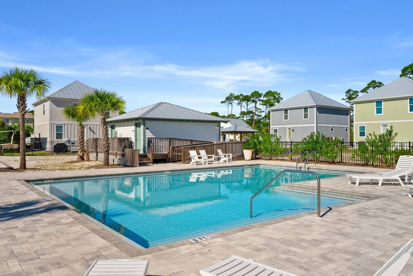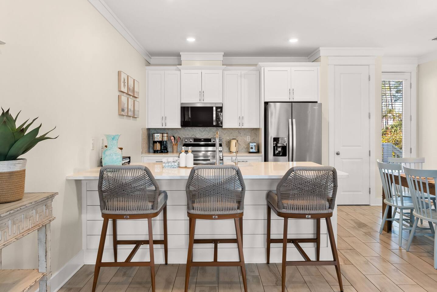 Welcome to Sunset Martini, a beautifully designed 5-bedroom, 3-bath coastal retreat just a very short walk from the white sands of Cape San Blas. Perfect for families and groups, this home blends modern coastal style, thoughtful amenities, and relaxed comfort in an easy, laid-back setting. Well-behaved dogs are welcome, so your whole crew can enjoy the getaway together. 🌿 Bright, Modern Coastal Interiors Step into light-filled, airy spaces designed for relaxation and gathering: -Spacious open living + dining area with plush furnishings -Fully equipped kitchen (quality cookware, Ninja blender, -Crockpot, toaster and so much more!) -Luxury toiletries provided -Smart TVs throughout -Designer wallpaper and curated décor in every bedroom -Lux quality sheets in all bedrooms -Books, board games & beach gear for effortless fun -Easy Self-Check In via Smart Lock -Perfect for families who want both comfort and style. ☕ Master Suite Retreat Your private master suite is made for slow mornings and quiet moments: -In-suite Keurig coffee bar -Private porch with peekaboo Gulf and sunrise views -Premium king bed & en-suite bathroom -A calming escape while the rest of the house wakes up. 🛏 Sleeping Arrangements (Sleeps 11) All bedrooms include premium mattresses and Roku Smart TVs: King Primary Suite — porch, coffee bar, en-suite bath King Bedroom 2- bay views King Bedroom 3- access to front porch with peekaboo gulf views King Bedroom 4- Bay Views Bunk Room — twin-over-full with trundle (great for kids) The downstairs level features the main living area with the kitchen, direct access to the back porch, and a king bedroom conveniently located across from a full bathroom with a walk-in shower. Perfect for multigenerational families or guests who prefer fewer stairs. The Upstairs area features 4 bedrooms (3 King, 1 Bunk) and two bathrooms as well as a full-size washer and dryer for your convenience. Enjoy access to the upstairs front porch from two King Bedrooms. Family-friendly extras include: 2 highchairs, pack & play, medium dog crate, and a rolling cooler — provided to make your stay simple and stress-free. ✨ Outdoor Living — Magical Day to Night Unwind outside with peaceful bay views and cozy touches: -Back patio overlooking St. Joseph Bay -Twinkle lights for evening ambiance -Premium propane grill -Comfortable lounge seating Ideal for grilling, gathering, and enjoying the Gulf breeze. 🏖 Community Amenities (Villa del Sol) Your stay includes exclusive access to: -Two pickleball courts (rackets included) -Beach volleyball court (volleyball provided) -Large resort-style pool -Beach Boardwalk Something for every age and energy level. 🌊 Short Walk to the Beach Just a super short walk brings you to the quiet, uncrowded shores of Cape San Blas — perfect for: Shelling Swimming Building sandcastles Sunset strolls Morning walks with your dog Bonfires This area is known for wildlife, calm waters, and family-friendly beaches. 📍 Nearby Attractions You’re close to the best of Cape San Blas & Port St. Joe: Salinas Park – 5 min (pickleball, playground, bayside trails) St. Joseph Peninsula State Park – 15 min Downtown Port St. Joe – 15–18 min (restaurants, boutiques, marina) Indian Pass Raw Bar – 10–12 min Apalachicola – 25–30 min Mexico Beach – 25–30 min