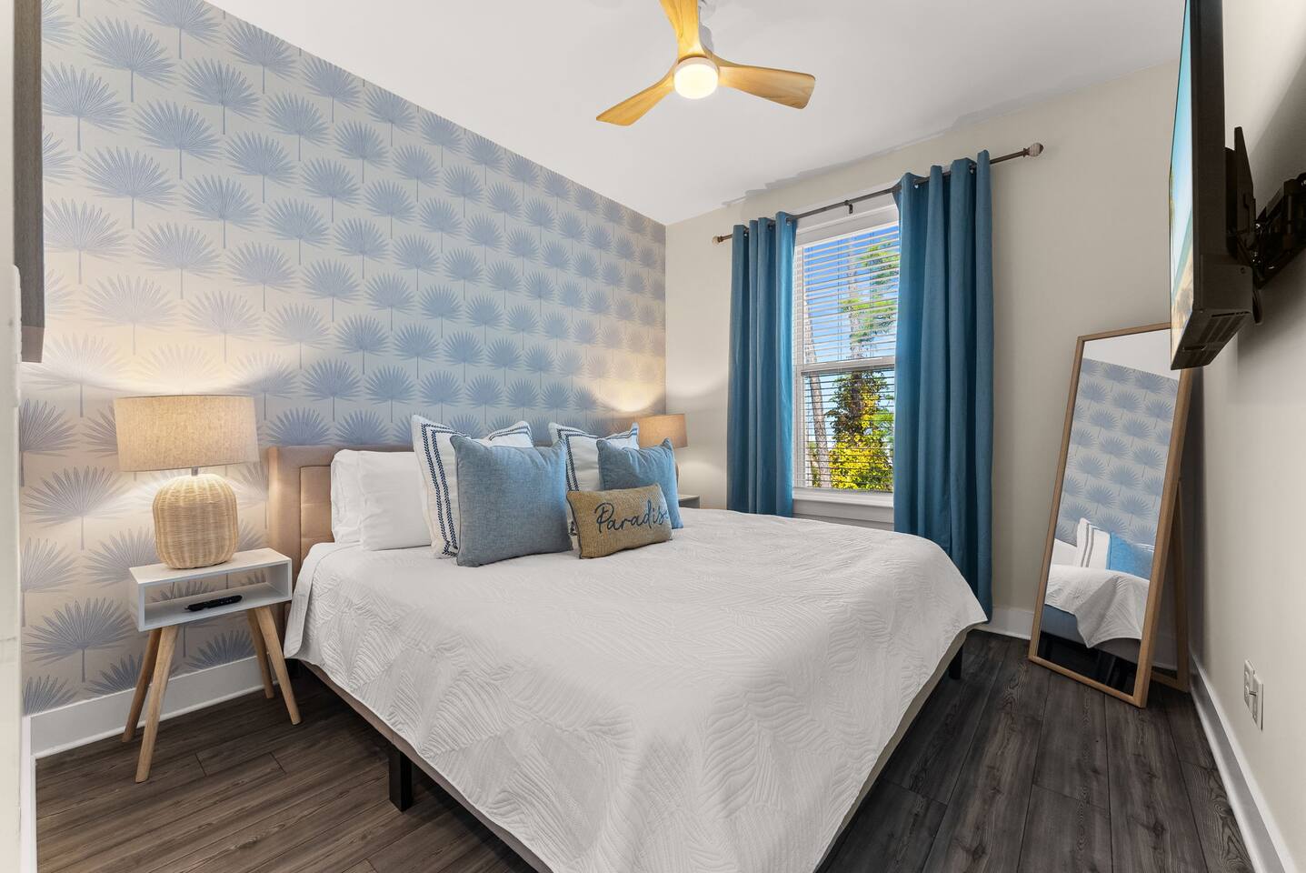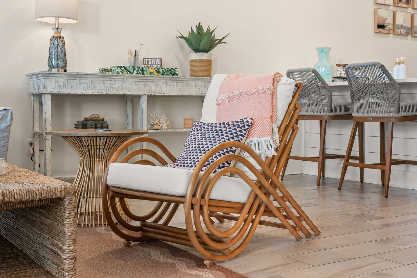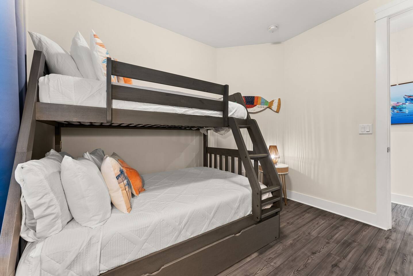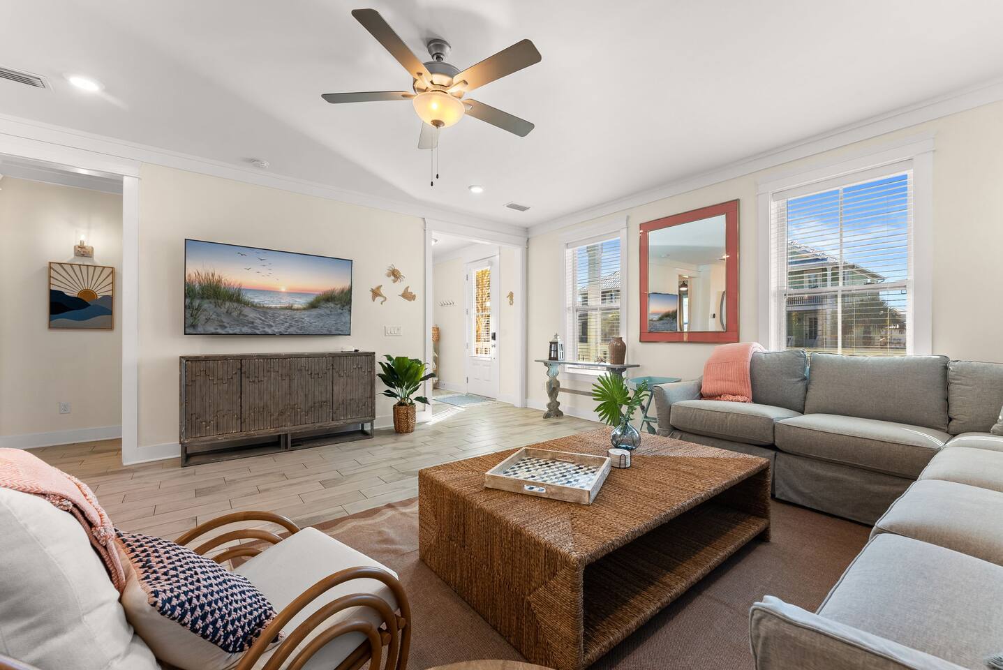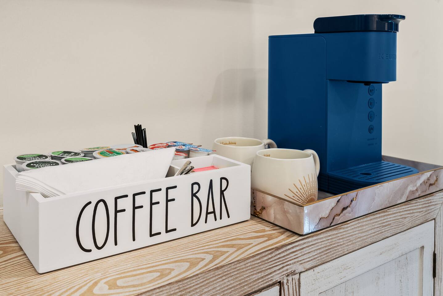 Welcome to Sunset Martini, a beautifully designed 5-bedroom, 3-bath coastal retreat just a very short walk from the white sands of Cape San Blas. Perfect for families and groups, this home blends modern coastal style, thoughtful amenities, and relaxed comfort in an easy, laid-back setting. Well-behaved dogs are welcome, so your whole crew can enjoy the getaway together. 🌿 Bright, Modern Coastal Interiors Step into light-filled, airy spaces designed for relaxation and gathering: -Spacious open living + dining area with plush furnishings -Fully equipped kitchen (quality cookware, Ninja blender, -Crockpot, toaster and so much more!) -Luxury toiletries provided -Smart TVs throughout -Designer wallpaper and curated décor in every bedroom -Lux quality sheets in all bedrooms -Books, board games & beach gear for effortless fun -Easy Self-Check In via Smart Lock -Perfect for families who want both comfort and style. ☕ Master Suite Retreat Your private master suite is made for slow mornings and quiet moments: -In-suite Keurig coffee bar -Private porch with peekaboo Gulf and sunrise views -Premium king bed & en-suite bathroom -A calming escape while the rest of the house wakes up. 🛏 Sleeping Arrangements (Sleeps 11) All bedrooms include premium mattresses and Roku Smart TVs: King Primary Suite — porch, coffee bar, en-suite bath King Bedroom 2- bay views King Bedroom 3- access to front porch with peekaboo gulf views King Bedroom 4- Bay Views Bunk Room — twin-over-full with trundle (great for kids) The downstairs level features the main living area with the kitchen, direct access to the back porch, and a king bedroom conveniently located across from a full bathroom with a walk-in shower. Perfect for multigenerational families or guests who prefer fewer stairs. The Upstairs area features 4 bedrooms (3 King, 1 Bunk) and two bathrooms as well as a full-size washer and dryer for your convenience. Enjoy access to the upstairs front porch from two King Bedrooms. Family-friendly extras include: 2 highchairs, pack & play, medium dog crate, and a rolling cooler — provided to make your stay simple and stress-free. ✨ Outdoor Living — Magical Day to Night Unwind outside with peaceful bay views and cozy touches: -Back patio overlooking St. Joseph Bay -Twinkle lights for evening ambiance -Premium propane grill -Comfortable lounge seating Ideal for grilling, gathering, and enjoying the Gulf breeze. 🏖 Community Amenities (Villa del Sol) Your stay includes exclusive access to: -Two pickleball courts (rackets included) -Beach volleyball court (volleyball provided) -Large resort-style pool -Beach Boardwalk Something for every age and energy level. 🌊 Short Walk to the Beach Just a super short walk brings you to the quiet, uncrowded shores of Cape San Blas — perfect for: Shelling Swimming Building sandcastles Sunset strolls Morning walks with your dog Bonfires This area is known for wildlife, calm waters, and family-friendly beaches. 📍 Nearby Attractions You’re close to the best of Cape San Blas & Port St. Joe: Salinas Park – 5 min (pickleball, playground, bayside trails) St. Joseph Peninsula State Park – 15 min Downtown Port St. Joe – 15–18 min (restaurants, boutiques, marina) Indian Pass Raw Bar – 10–12 min Apalachicola – 25–30 min Mexico Beach – 25–30 min